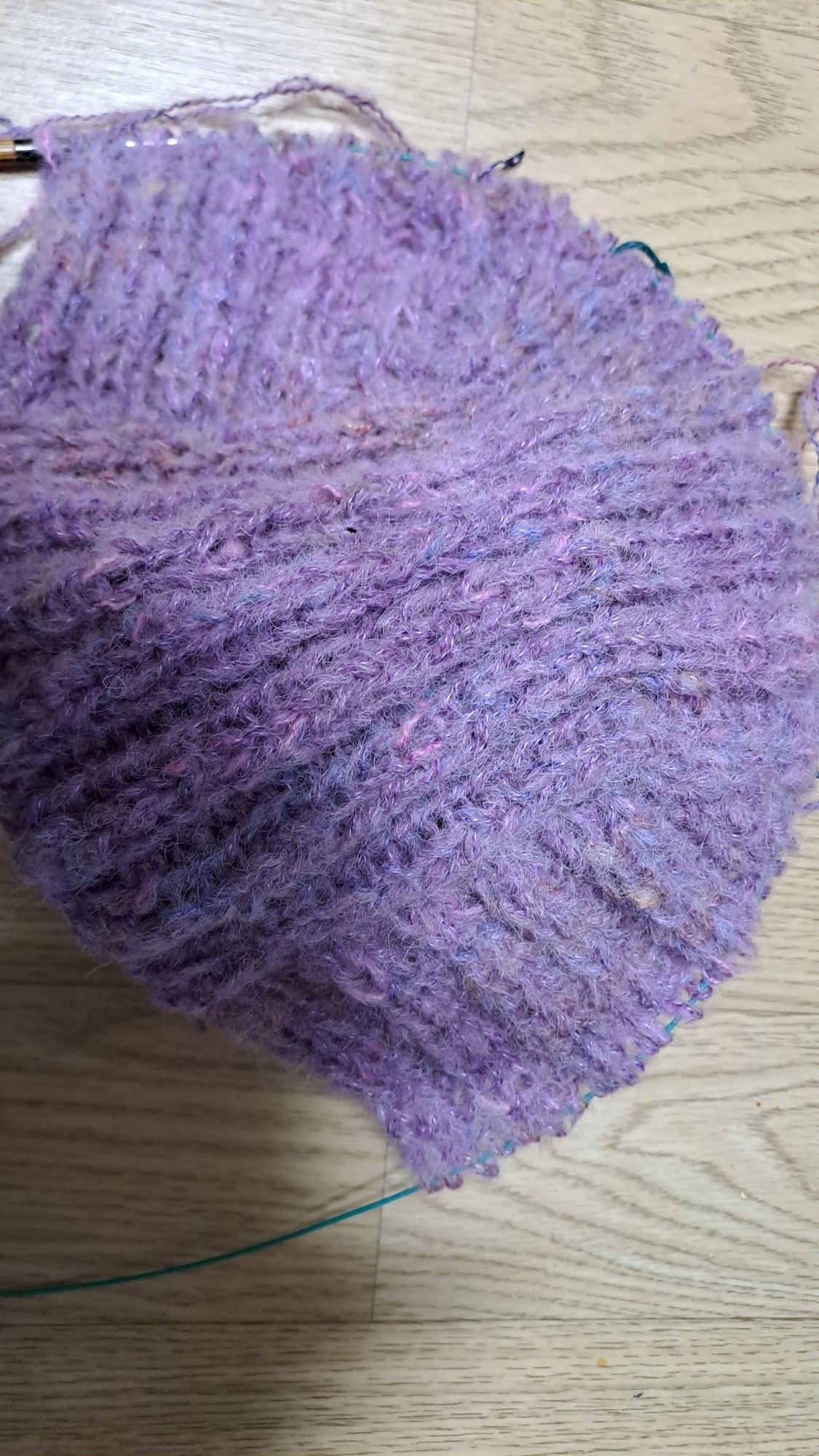 근데 아래쪽 더블니팅은 생각한 것 처럼 나오질 않는다. 다음건 그냥 2코 고무뜨기로 마무리해야겠다....